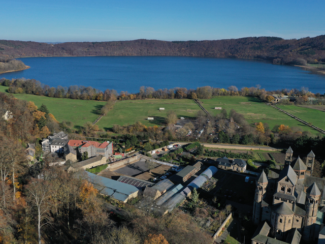 Die Abteikirche Maria Laach wurde vor fast 1.000 Jahren von den Mönchen errichtet – ihr bis heute beeindruckenden Erhalt zeigt den besonderen Wert von Baukultur, die auf Dauer angelegt ist. Neben der Kirche prägen seit jeher die klösterlichen Werkstätten, die Gärtnerei und das Handwerk den Ort. So verbindet Maria Laach seit Jahrhunderten Beständigkeit, handwerkliche Qualität und Innovation – und bietet damit den idealen Rahmen für ein Symposium über nachhaltiges Bauen und Sanieren.